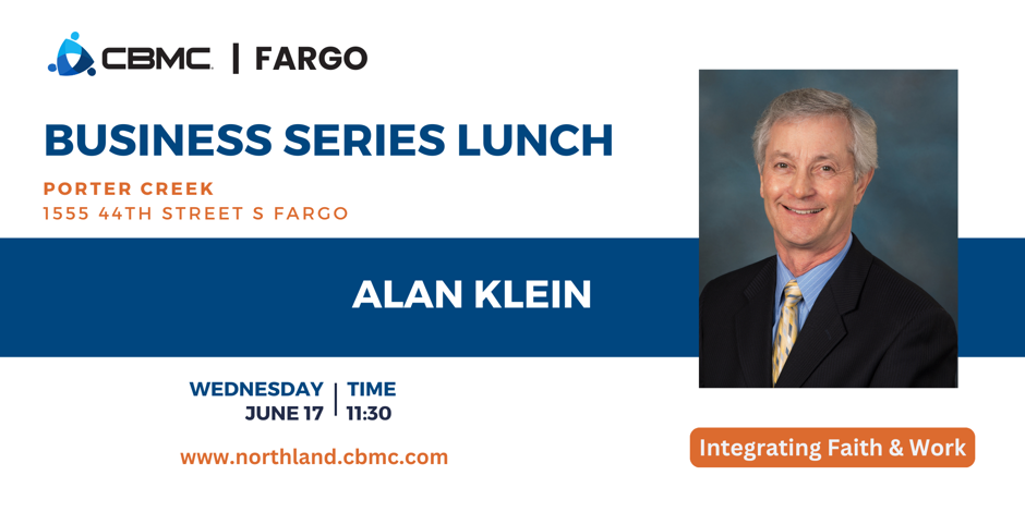 Fargo CBMC Business Series Luncheon – Integrating Faith + Work June 17 @ 11:30 am – 12:30 pm Porter Creek Hardwood Grill 1555 44th Street South, Fargo Businessmen & women are welcome! Lunch provided – Space is limited on a first come basis, Register today!